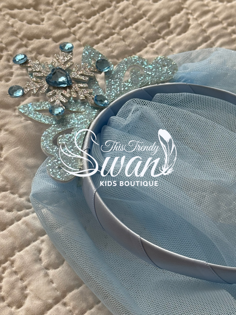 - The snowflake design headband perfectly matches any Elsa dress and comes with a delicate light blue veil for an extra touch of enchantment. Paired with the sparkling wand, this set makes every Frozen fan feel like the real Snow Queen.