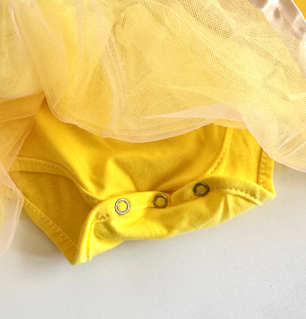 - Dress your little one like a true princess with this Belle-inspired romper dress.