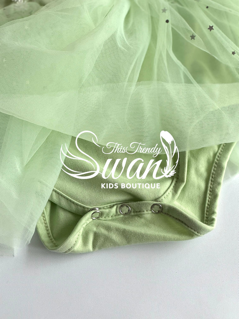 - Bring a touch of fairy-tale magic to your little one’s wardrobe with this enchanting Tinker Bell inspired romper.