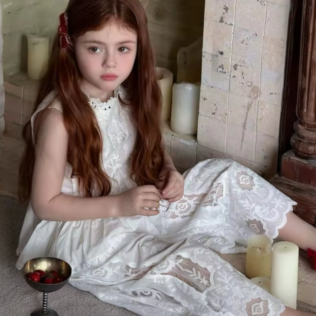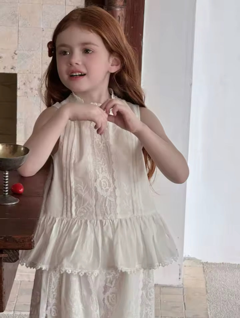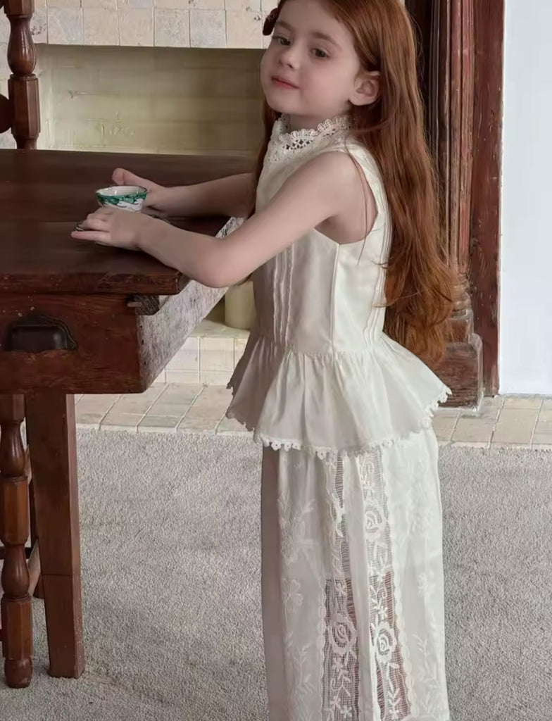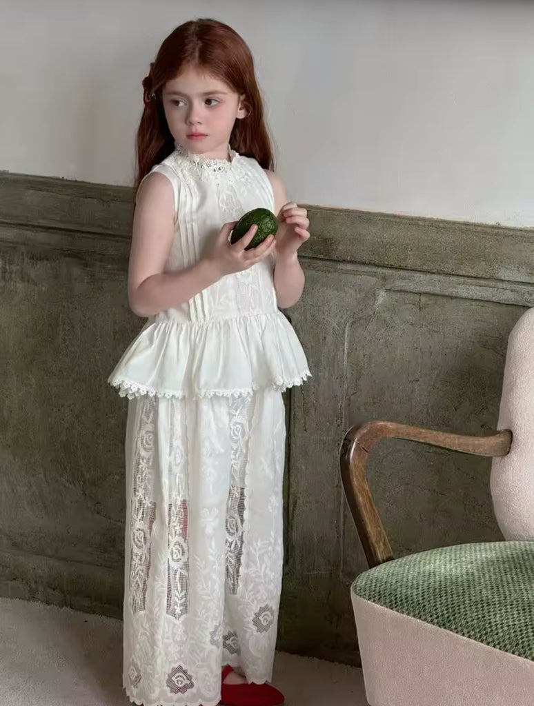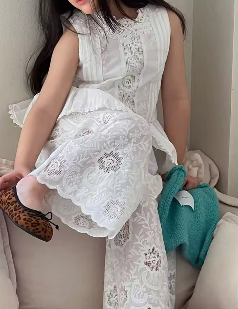 A two-piece white set for girls designed with elegance and comfort in mind, perfect for a refined yet playful look.